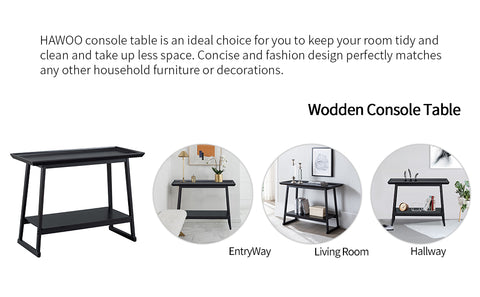 The black console table by Hawoo is a great addition to any home. In a rich glossy black finish, it's sure to complement any home decor. Featuring a bottom shelf that provides plenty of space to display collectibles, books, or necessities. We Know You’ll Love our entry table, so we guarantee One Year Aftersales Warranty. Worry-free to try and buy it now.