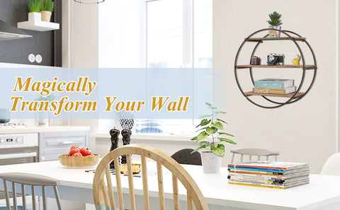 Brown Round 3 Tier Floating Shelves for Wall Decor